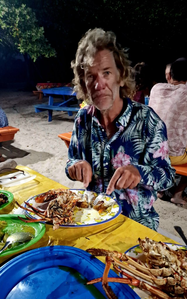 In thanks for the sailboats helping them, they are incredibly friendly. Today when we arrive they invite us to dinner. It is a magical evening. There are 10 of us who excitedly come in to greet the family. They are in the middle of cooking. The coconut crabs are boiling in a pot with coconut milk and curry over an open fire. The freshly caught fish is cut into small pieces and transformed with vegetables and lime into a beautiful ceviche. The little boy finds it exciting with new people who give him attention. It must be boring to never have any friends, but he still lives a pleasant life. We sit down at the table and are served a fantastically tasty meal. Imagine sitting here in the middle of the Pacific Ocean eating coconut crab and ceviche! The family doesn’t want to pay for the food, but they want us to bring food and/or practical things for them. That is the only way they can get food. With sailors who come here. They get fruit, vegetables, preserves, pasta and a lot of other things that we hope they enjoy. The evening is a great success and we go back with our dinghies full and satisfied and with the corners of our mouths up to our ears after a magical experience.