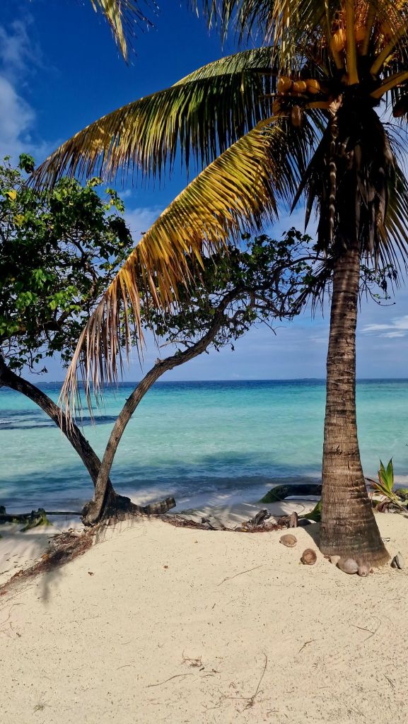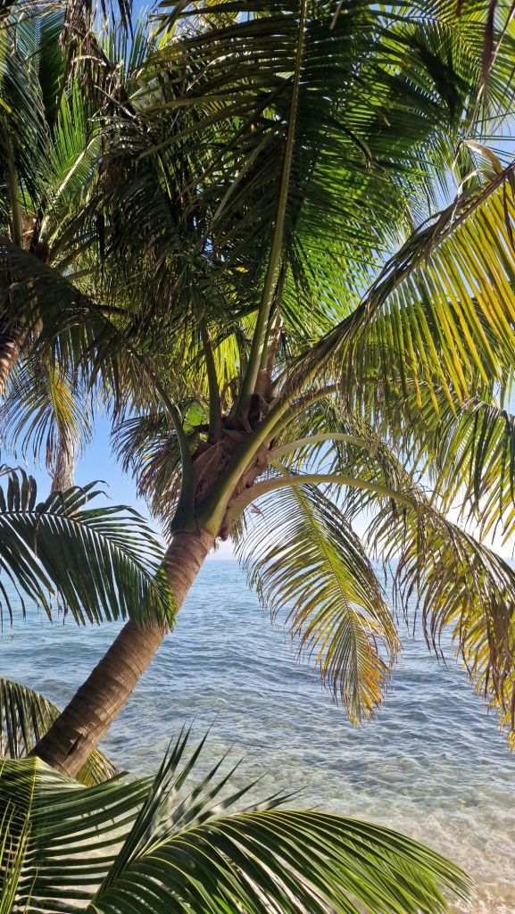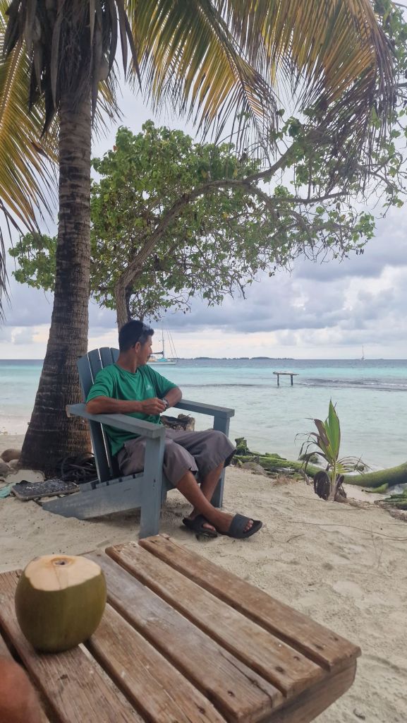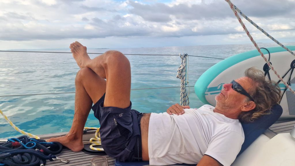 Sitting on the deck in the sun and enjoying. It’s a clear blue sky with small white clouds in beautiful formations. The sea is wonderfully turquoise and the view is still. The atoll we are in is full of palm trees that surround us. It is wonderfully peaceful, quiet and beautiful. We are on a largely deserted atoll. About 30 hours of sailing from Bora Bora due west. Four people live here and they only get a visit from a ferry about once a year, although it has now been two years since it was here. Then they come here and pick up the coconuts that they have collected to be used for copra production. The family consists of a woman and her 3-year-old son, her mother and uncle. The two men work on another island to earn money. They are more or less self-sufficient, eat the fish and coconut crabs they catch, use coconuts in cooking and grow some vegetables. In addition to this, sailboats that come there contribute food, vegetables and other necessities. Among other things, they are often on board a boat that has been there for a long time and are allowed to use the internet to keep in touch with the outside world.